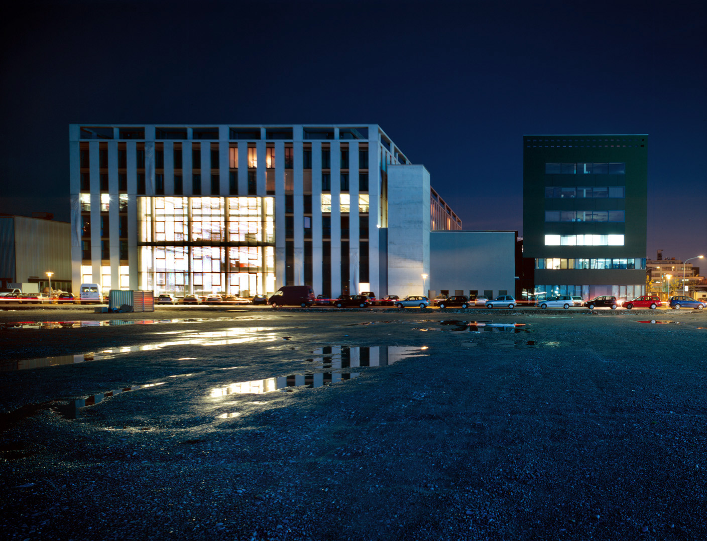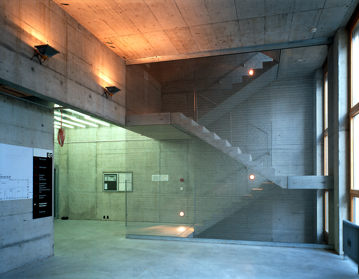 Für den Neubau hatte die hindernisfreie Umsetzung der komplexen räumlichen Zusammenhänge oberste Priorität. In den unteren Geschossen liegen Probebühnen, Werkstätten und Montagehallen mit freien Deckenspannweiten von bis zu 17 m, darüber kleinteilig strukturierte Büros und Wohnungen. Da es nur sehr wenige durchgehende lastabtragende Achsen gibt, bedurfte es eines hohen konstruktiven Aufwands mit mehrgeschossigen Wandscheiben als Träger und mitunter komplexen Auswechslungen, über die die Kräfte bisweilen „spazierengeführt“ werden müssen, um der Nutzungsstruktur nicht entgegenzustehen.