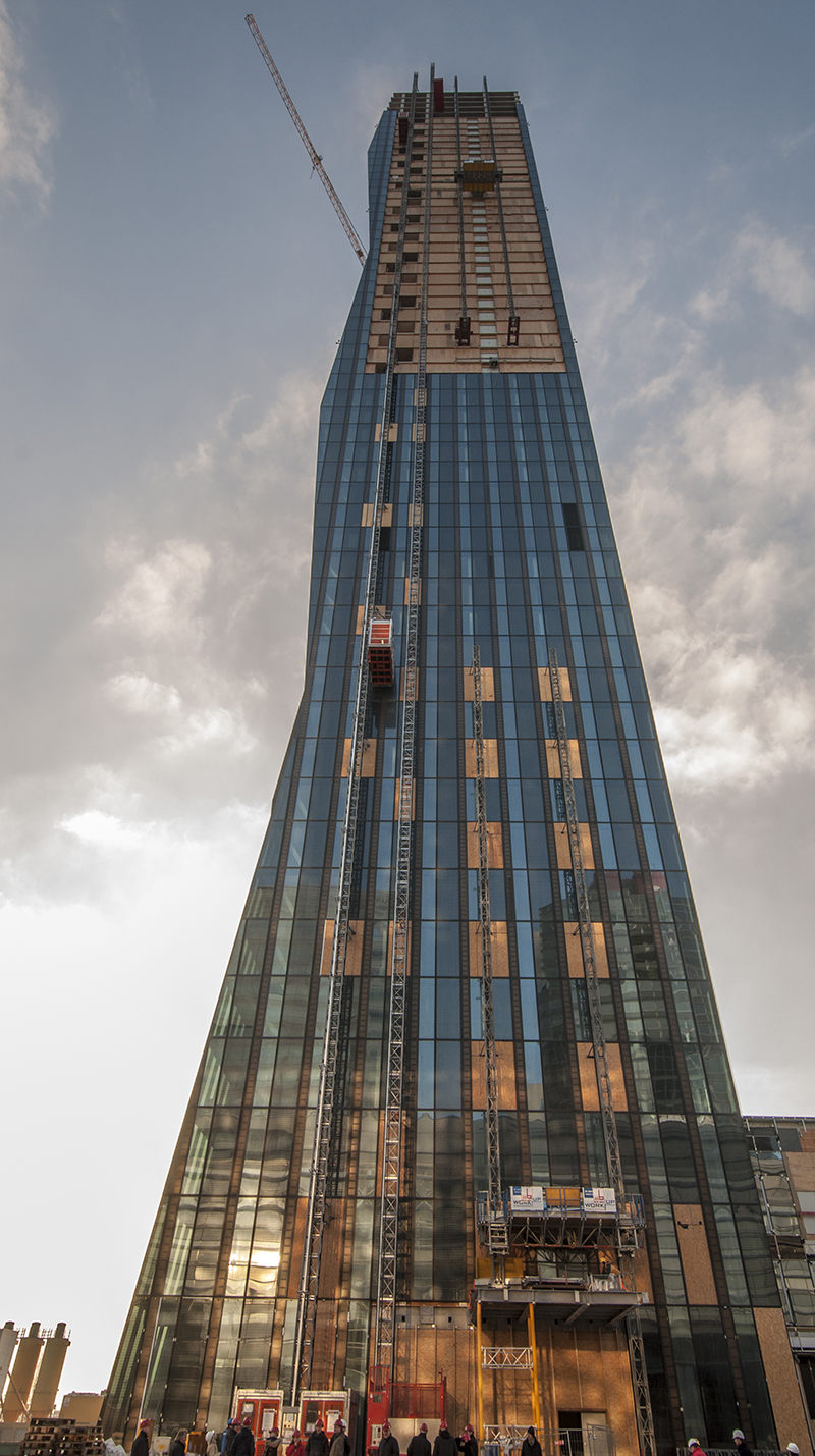 Mit seinem extremen Verhältnis von Höhe zur geringen Breite von durchschnittlich 22 m an der Schmalseite (Breitseite: 59 m) zählt der Turm zu den schlanksten Hochhäusern der Welt.