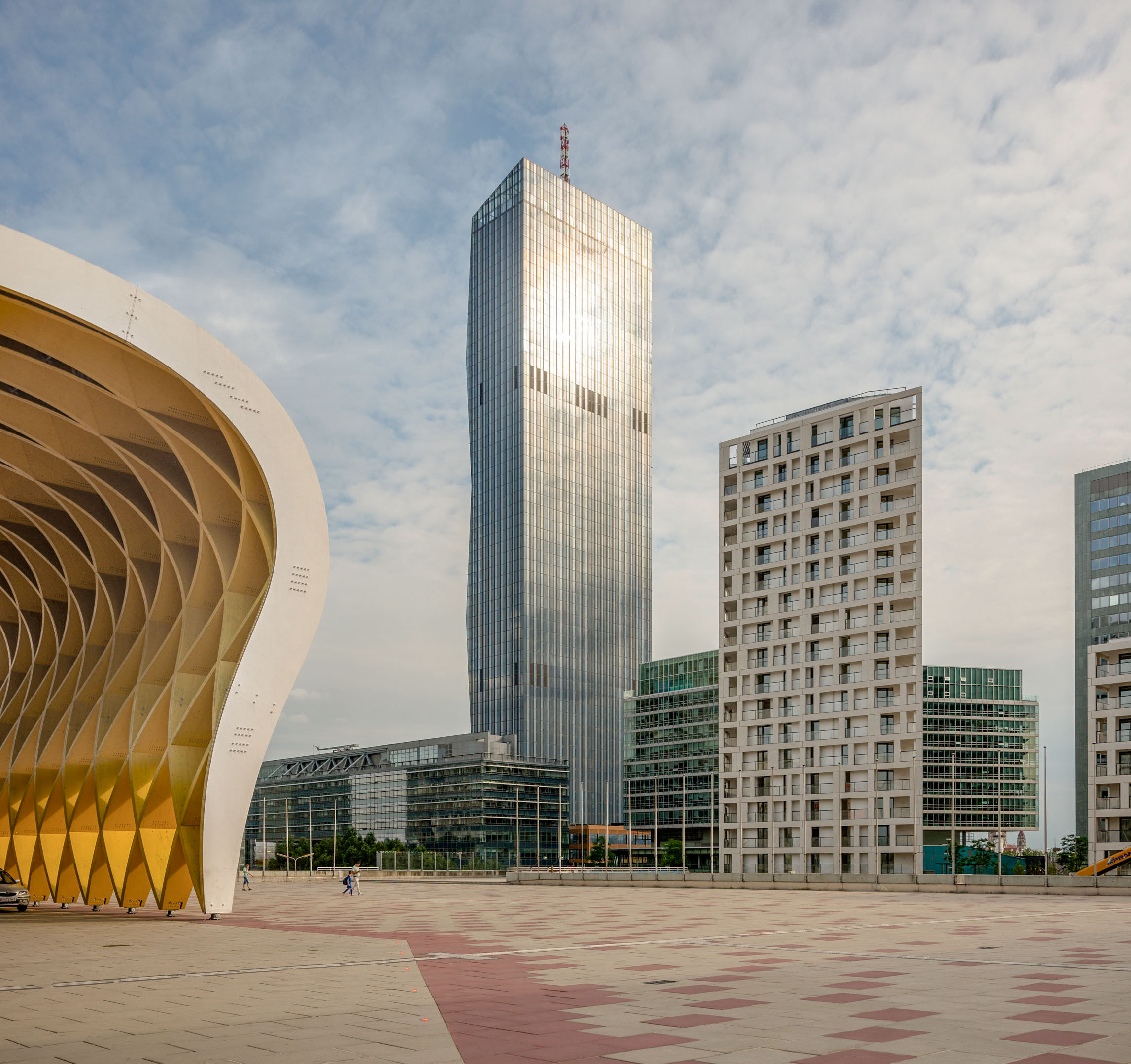 Direkt am Brückenkopf bildet das, nach dem benachbarten Donauturm, zweithöchste Gebäude Österreichs mit seinen 220 m Höhe den imposanten Auftakt zur Donau City, wo rund um die Gebäude für die Vereinten Nationen bisher meist nur etwa 100 m Höhe erreicht wurden. Zwei weitere, jedoch deutlich niedrigere Türme sollen folgen und eine lebendige Piazza formen.